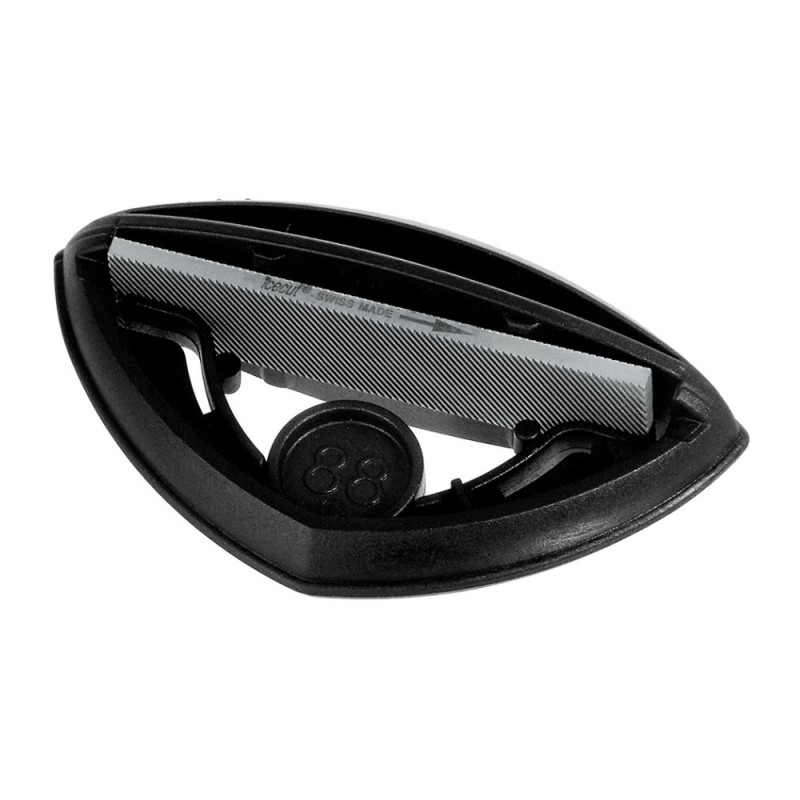 Angulador graduable de 90º a 85º por grado. Adaptable para usar con ambas manos. Compatible con limas, piedras y diamantes de hasta 6 mm de ancho y sin máximo de largo. Incluye lima de 80 cm.