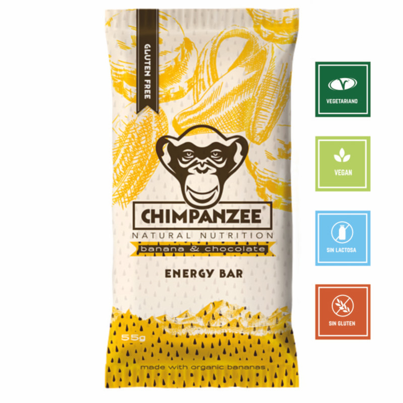Jarabe de arroz, harina de avena sin gluten 12%, harina de soja 12%, mijo y arroz crujiente mijo 29%, maíz, arroz, azúcar de caña) plátano deshidratado 9.5%, trozos de chocolate 7% (pasta de cacao 46%, azúcar, manteca de cacao 10%, emulsionante: lecitina de soja), aceite de colza, humectante: glicerina, aroma natural de plátano.