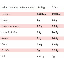 Todos los ingredientes son NATURALES y BIO, sin azucares añadidos, SIN OMG (sin organismos modificados genéticamente).
