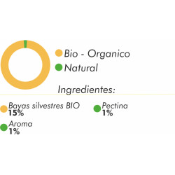 Zumos y purés de frutas 97% (zumo de manzana concentrado, puré de manzana concentrado, puré de mango 6% zumo de maracuyá concentrado, zumo de naranja concentrado) gelificante: pectina, fibra cítrica, aroma natural, zumo de limón concentrado.