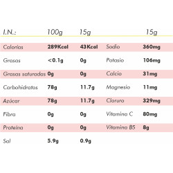 PREPARACIÓN: 1 dosis (15g) por cada 500ml de agua. Bebida hidratante para antes y durante de la actividad. No sobrepasar la dosis diaria recomendada (60gr). Seguir estas recomendaciones para un resultado más óptimo.