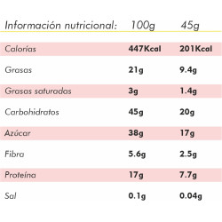 Todos los ingredientes son NATURALES y BIO, sin azucares añadidos, SIN OMG (sin organismos modificados genéticamente).